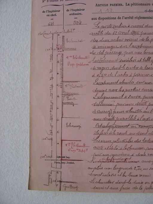 Plan dressé pour la demande d'alignement du sieur Grandeau en 1896 pour madame veuve Thébault. AD Morbihan S246.Immatriculation