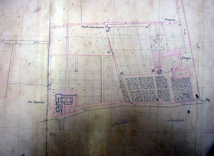 Plan cadastral de 1844 : section K5 château de Limoges et couvent des Capucins. AM Vannes 21Fi.Immatriculation