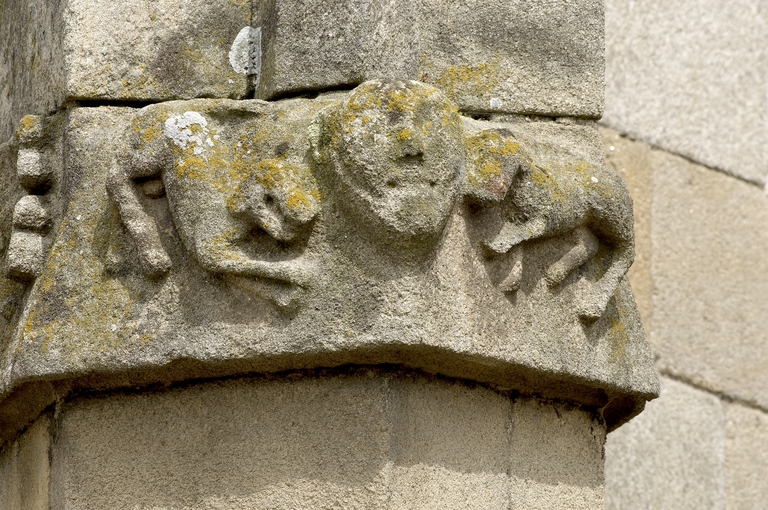 Détails d'un conterforts du chevet : tête humaine accostée de chiensImmatriculation