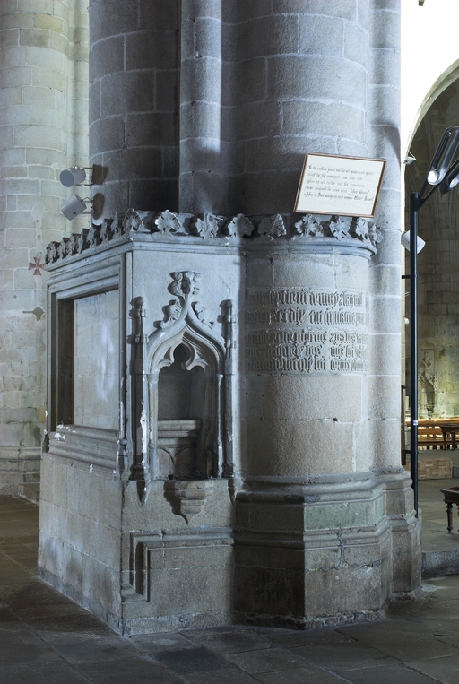 Retable, crédence liturgique et inscription de fondation sur la pile sud à l'entrée du choeurImmatriculation