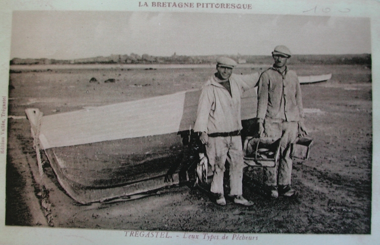 Zantig et son canot avec un collègue marin-pêcheur : représentations stéréotypées des marins-pêcheurs bretons, au 2ème quart du 20ème siècle (carte postale, collection particulière)Immatriculation