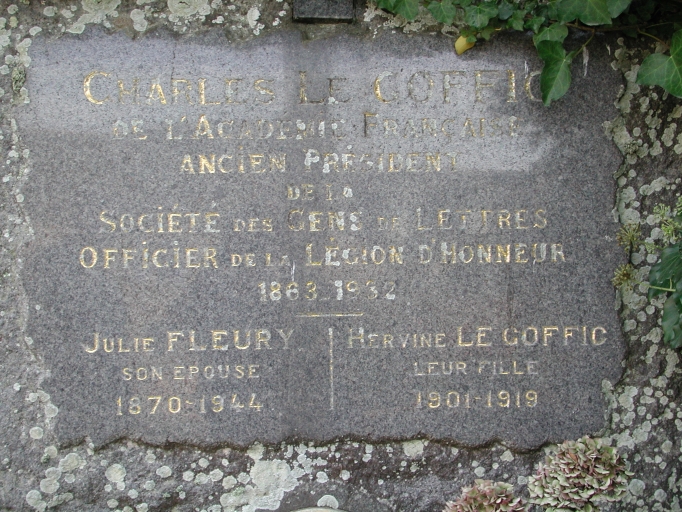 Plaque gravée sur la pierre tombale de Charles Le GofficImmatriculation