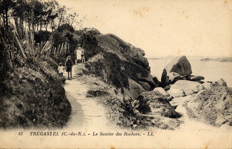 Sentier littoral sur la côte de Trégastel, au début du 20ème siècle (collection particulière)Immatriculation