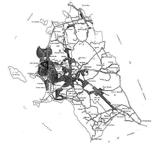 Plan de situation du quartier urbain d'après le tableau d'assemblage de 1987, 1/10000e réduit.Immatriculation