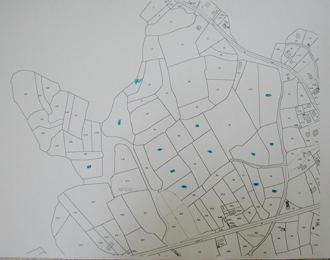 Extrait cadastral : carte de situation du marais de Noteno et des parcelles appartenant au Conservatoire du Littoral (Mairie de Trébeurden)