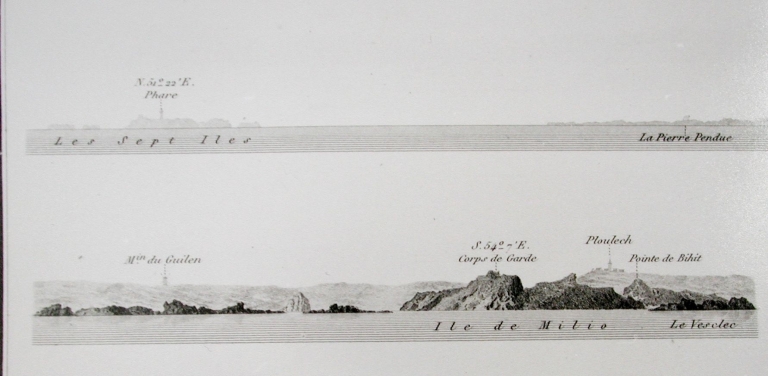 Extrait du Pilote de Beautemps-Beaupré : le corps de garde de Milliau relevé en 1837 (collection particulière)Immatriculation
