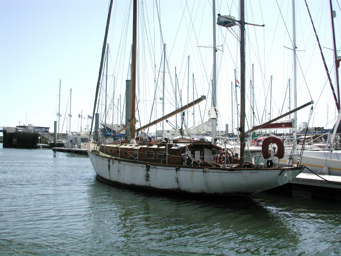 Vue de la coque sur le côté babord : remarquer les hauts endommagésImmatriculation
