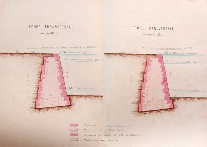 Plan coupe transversale : projet de construction d'un quai et d'un mur latéral dans le vieux port, 1876 (AD 22)Immatriculation