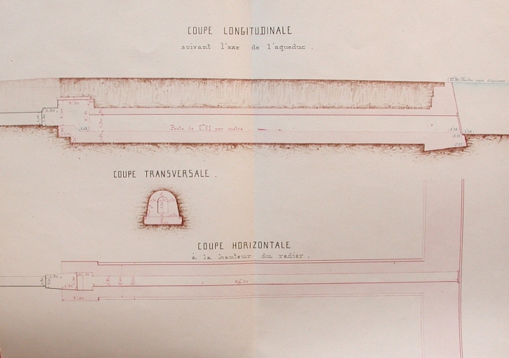 Coupe longitudinale suivant l'axe de l'aqueduc, 1876 (AD 22)Immatriculation