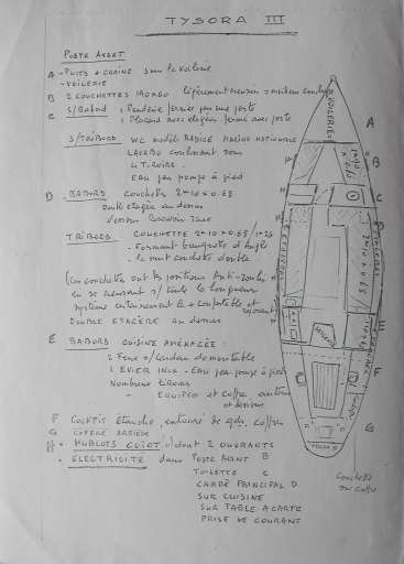 Dessin du plan de pont et descriptif des aménagements et des équipements, vers 1965 (collection particulière)Immatriculation