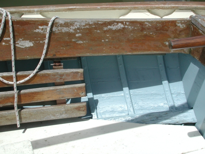 Vue de la charpente intérieure : membrures ployées et serreImmatriculation
