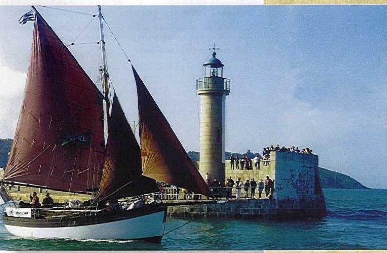 Kermor sous grande voile, foc et trinquette, devant le fanal d'entrée du port de Binic (collection particulière)Immatriculation
