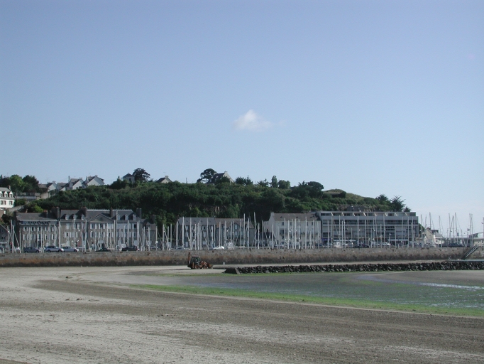 Vue du quai d Pordic depuis la Banche à marée basse : remarquer le double escalier, les gradins et la piscine enrochéeImmatriculation