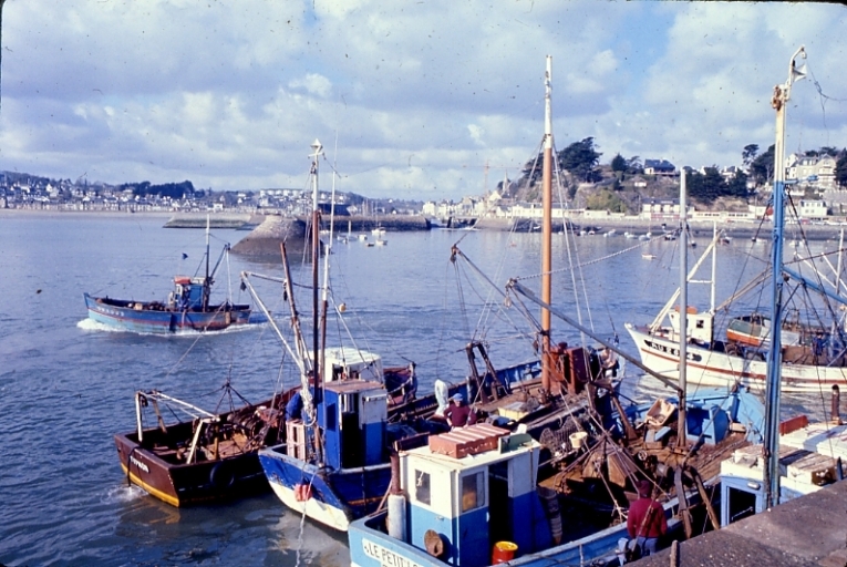 Bateaux coquilliers au môle du Penthièvre, vers 1970, à l'apogée des pêches à la coquille St-Jacques (AD 22)Immatriculation