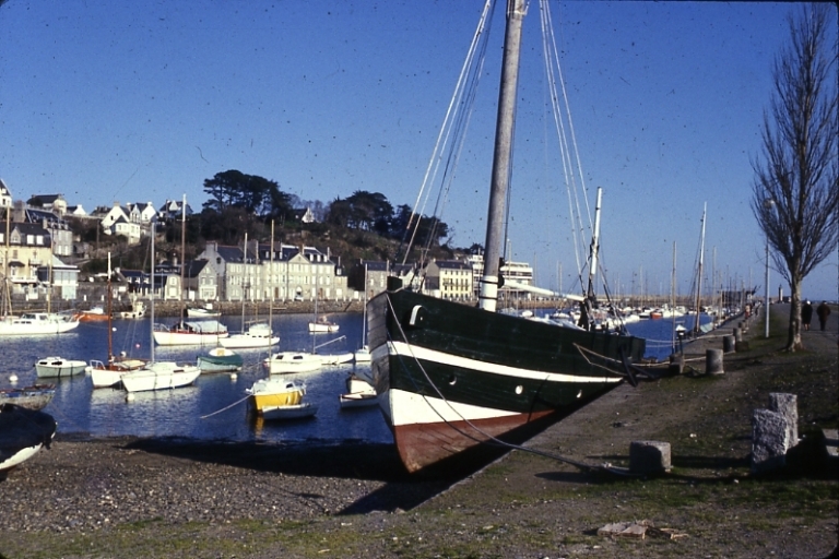 La cale de carénage avec l'ancien thonier La Tempête, échouée au quai de Pordic, 1980 (AD 22, Fonds Joêl)Immatriculation