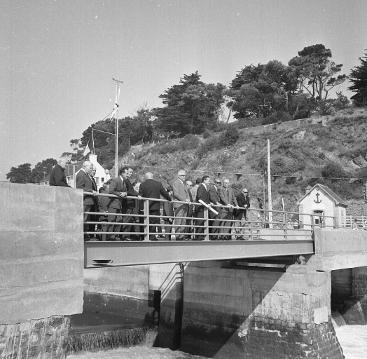 Inauguration de la passerelle de l'écluse du bassin à flot, vers 1960 (AD 22, fonds Joël)Immatriculation