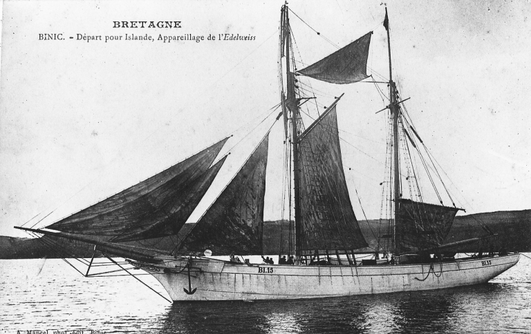 Appareillage de la goélette Edelweis de l'armement Le Suavé-Galerne, construite en 1905 et coulée à Barfleur en 1917 (AD 22, Fonds Joël)Immatriculation
