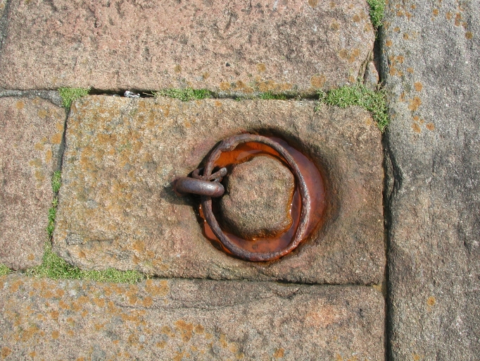 Vue en détail d'un anneau d'amarrage scellé au quaiImmatriculation
