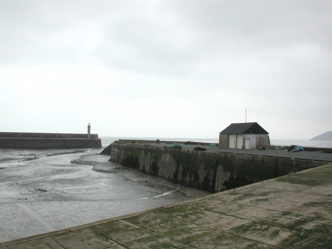 Vue à marée basse des quais, cales et terre-plein qui encerclent et équipent l'avant-port de BinicImmatriculation