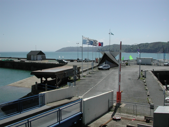Vue de la passerelle et du terre-plein élargi, faisant défense et barrage contre la merImmatriculation