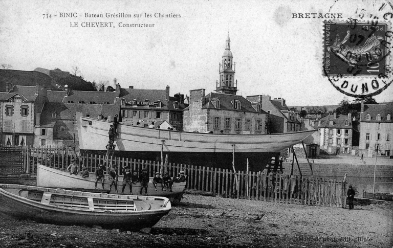 Construction d'un navire groisillon sur la cale en 1910 (collection particulière)Immatriculation