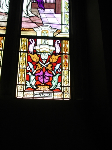 Vue de détail : vitrail offert par M° et Mme le Pomelec (armateurs)Immatriculation