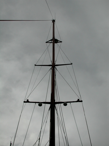 Vue du gréement 7/8ème : remarquer les 2 étages de barres de flèche et le guignolImmatriculation