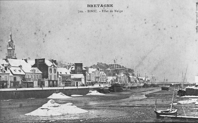 Neige et sable au fond du bassin de Binic, 1er quart 20ème siècle, au temps du cabotage et de la grande pêche (AD 22, Fonds Joël)Immatriculation