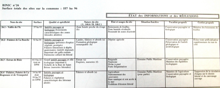 Etat des informations et des propositions de gestion des espaces littoraux de Binic, 1988 (DIREN Bretagne, Espaces naturels du CG 22)Immatriculation