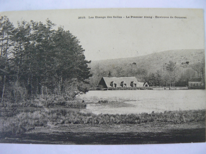 Carte postale présentant le premier étang des Salles. AD Côtes-d'Armor 16 Fi 2824Immatriculation