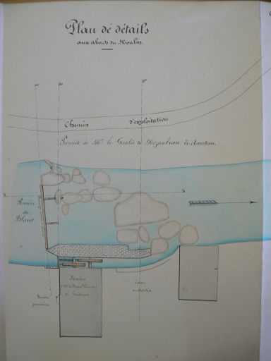 Plan du moulin établi lors de la demande de réglementation, 17 juin 1865. AD Côtes-d'Armor 84S5Immatriculation
