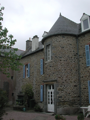 Vue de la façade intérieure de la maison dite des Douaniers : remarquer le puits et les ouvertures dans la tourelleImmatriculation