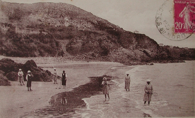 La plage du Vau-Chaperon en 1935 : remarquer l'ancien escalier Legris menant à la jetée (collection particulière)Immatriculation