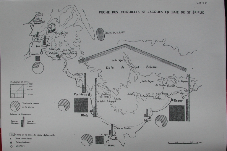 Carte de gisement des pêcheries de coquilles Saint-Jacques en baie de St-Brieuc-St-Quay, 1960 (Piboudes)Immatriculation