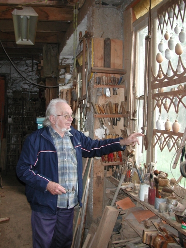 Jean Peillet montrant les éléments de la guirlande de la coupole de la pagode de L'Isle AdamImmatriculation