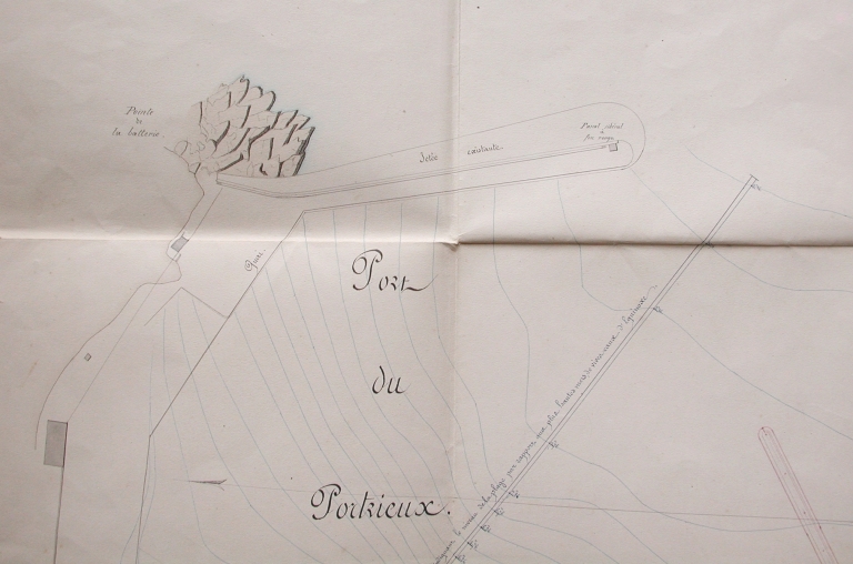 Plan daté de 1854 : la jetée actuelle du Portrieux datée de 1823 et le fanal sidéral à feu rouge (AD 22)Immatriculation
