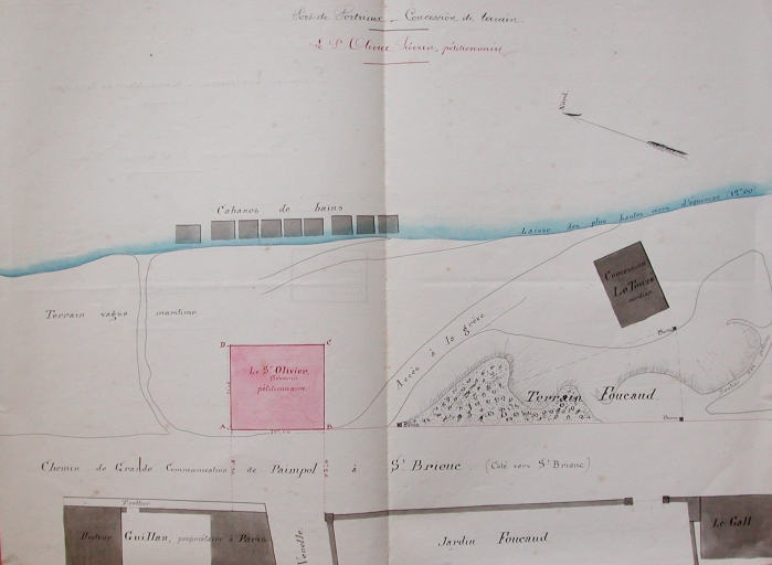 Concessions sur la Banche de Portrieux en 1882 : remarquer la présence d'un cordier, Le Touzé et les premières cabines de bains (AD 22)Immatriculation