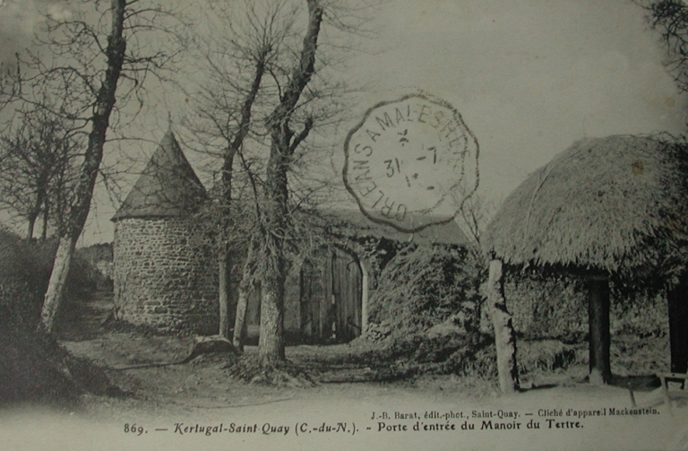 L'ancien manoir du Tertre en Kertugal, début 20ème siècle : remarquer la porte en plein ceintre et le loc'h à l'extérieur (Barat, collection particulière)Immatriculation
