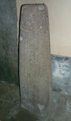 Louannec, le bourg. Stèle funéraire portant l'inscription latine Disideri fili Bodognus (haut Moyen-Age)Immatriculation