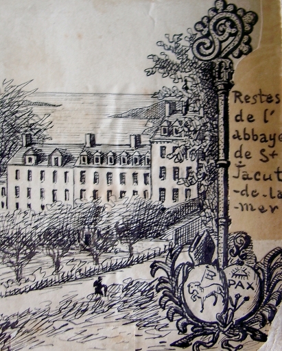 Restes de l'abbaye de Saint-Jacut-de-la-Mer, d'après croquis du vicomte Henri Frotier de la Messelière, 1er quart du 20ème siècle (AD 22)Immatriculation