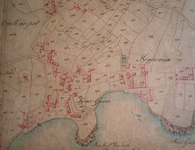 Extrait du cadastre de 1832, section AC : écart de Keranroux (AD 22)Immatriculation