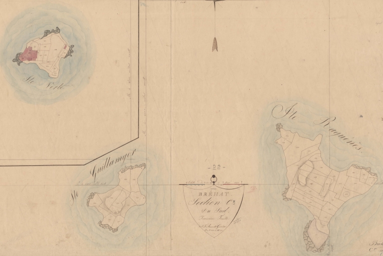 Bréhat, d'après le cadastre de 1832, section C, 3ème feuille dite du Sud, l'île Verte, l'île Raguénès et l'île Guillamgor (AD 22)Immatriculation