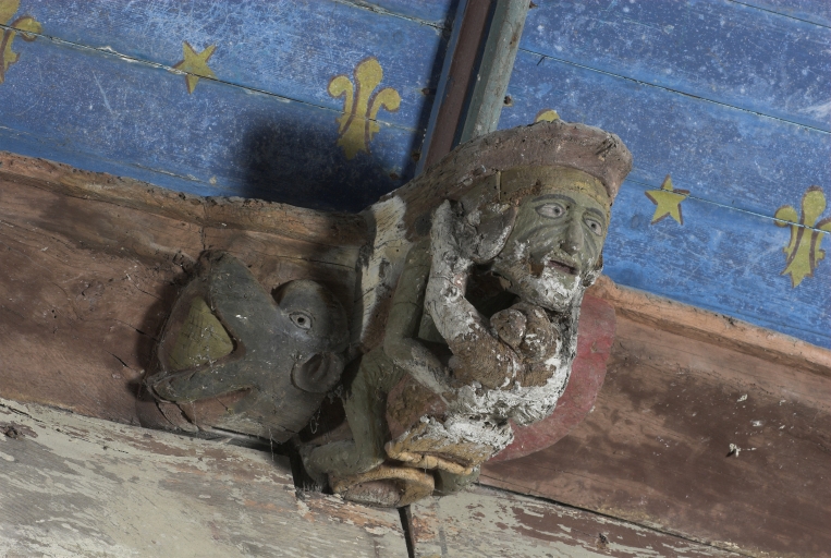 Nef, sablière nord, détail sculptéImmatriculation