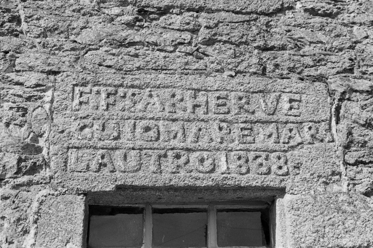 Logis 3, inscription sur linteau (état en 1969)Immatriculation