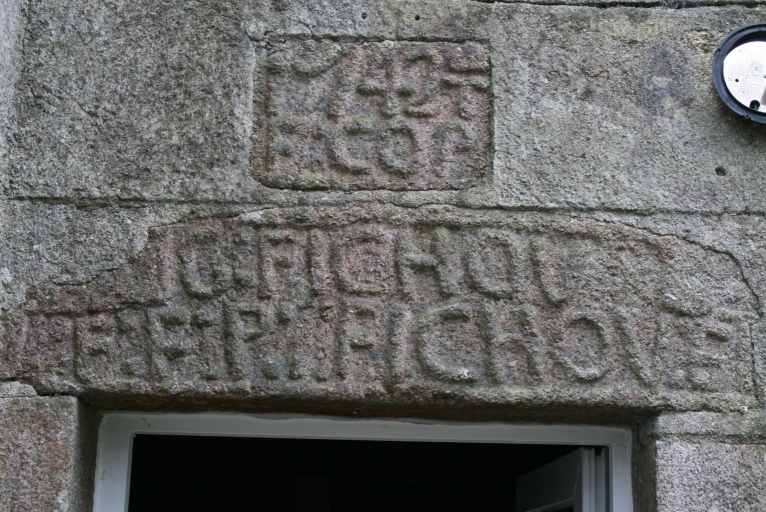 Partie ouest : ensemble de trois logis, détail du logis daté 1742 (inscription)Immatriculation