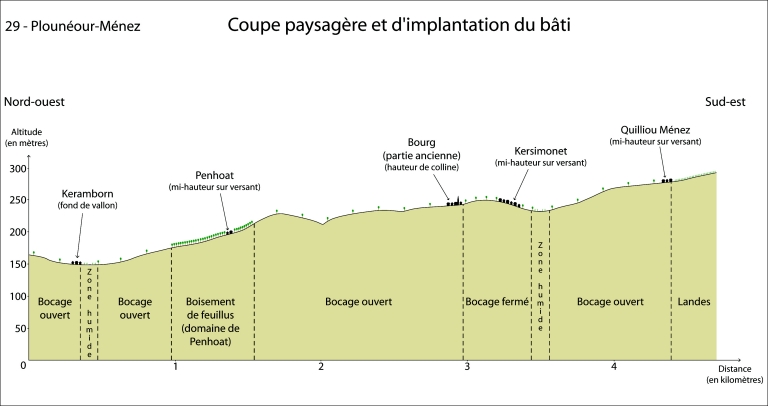Les maisons, fermes et hameaux sur la commune de Plounéour-Ménez,