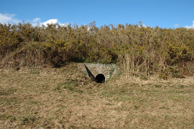 Vue de l'égout central en maçonnerie pour l'évacuation des eaux pluviales de la batterie (état en 2007)Immatriculation