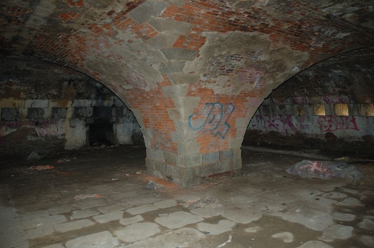 Roscanvel, pointe de Cornouaille : tour-modèle n° 1, deuxième niveau voûté en briques, pilier centralImmatriculation