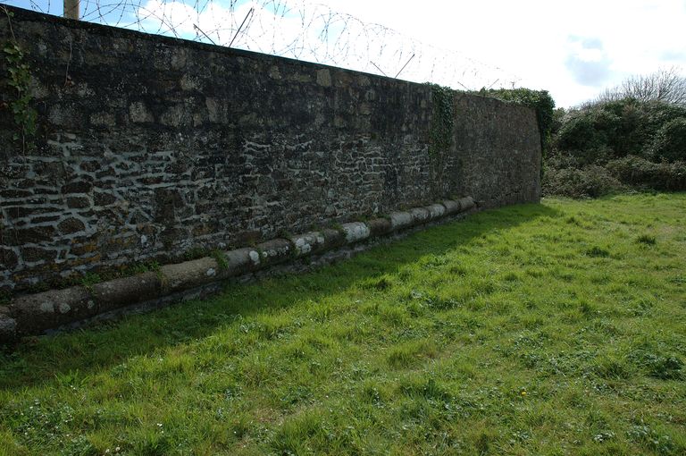 Vue de la batterie haute du Mengant : courtine de gorge. Situé au ras du sol du fait du comblement des fossés, le cordonImmatriculation