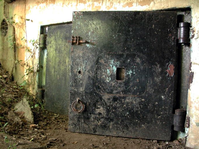 Vue de la casemate de type 505 du Portzic : porte blindée à deux battants de la chambre de tir de type 447P01Immatriculation